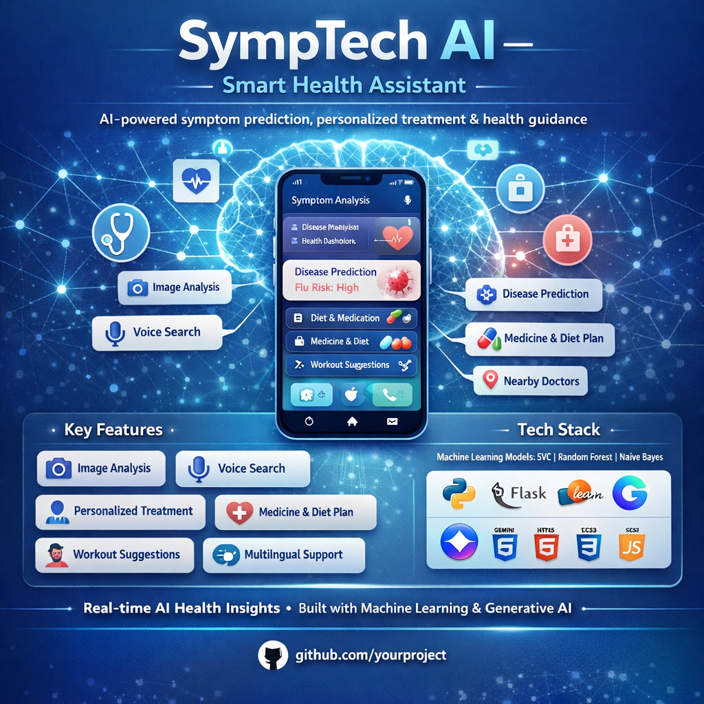 AI-powered health assistant with 10+ smart features including image-based diagnosis, voice input, and multilingual support. Integrated Gemini 1.5 Pro API for real-time medical image analysis.